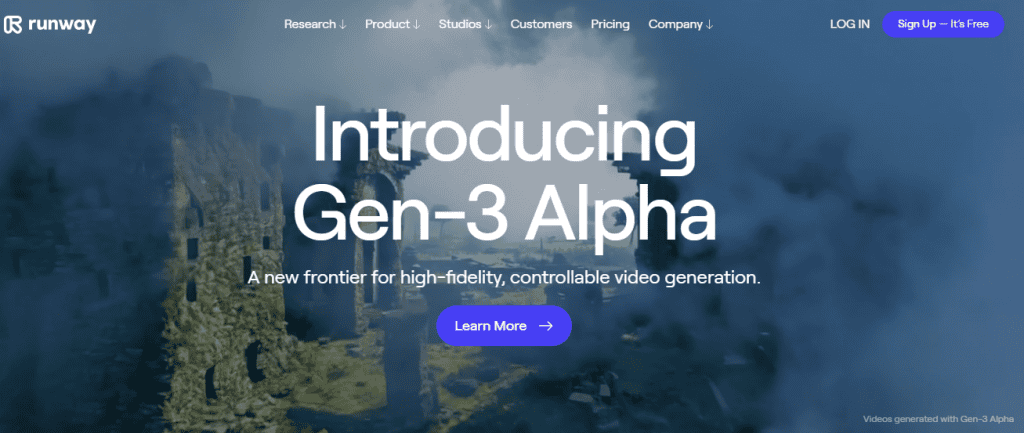 Excelente para criar vídeos por meio de inteligência artificial, o Runway AI possibilita que o usuário realize a edição avançada de cenas ou crie conteúdos novos por meio de prompts.