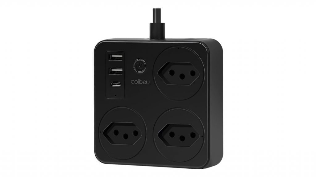 Essa régua de energia é multifuncional: possui 3 tomadas, 2 entradas USB, 1 USB-C e suporte a controle remoto pelo app e por voz. É uma solução prática para conectar vários dispositivos e automatizar o uso com agendamentos e desligamento à distância.